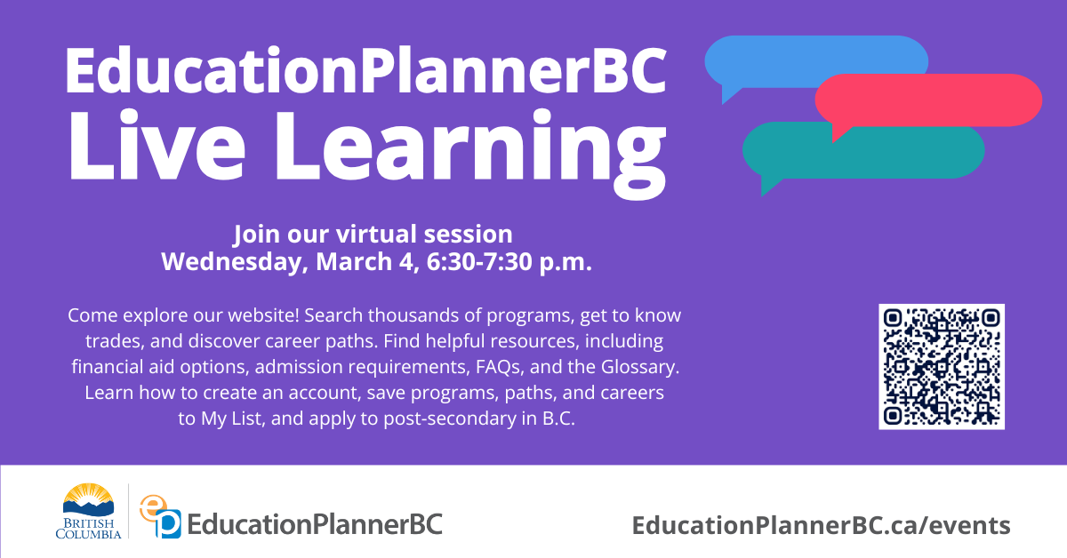 Event Calendar: https://www.educationplannerbc.ca/events/epbc-live-learning-march