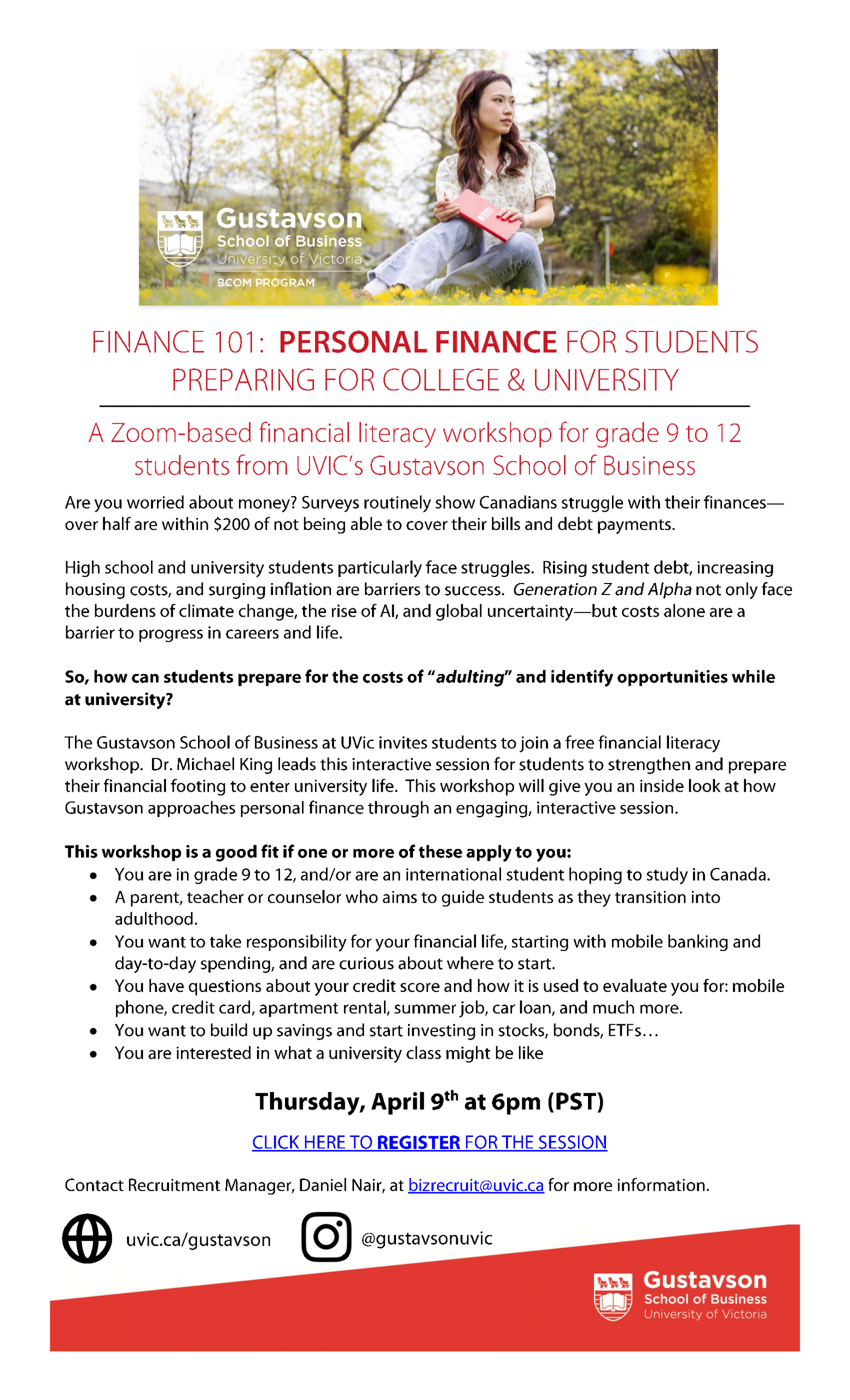Join Dr. Michael King for an engaging session on managing money, building credit, saving, and investing. Learn practical skills to prepare for university life and future financial independence.